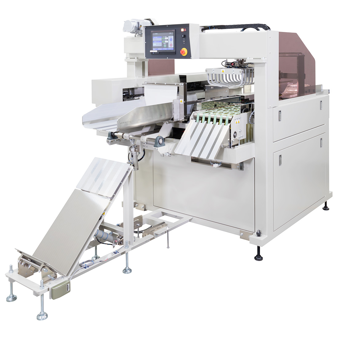 小袋の集積、挿入に特化した、封袋は人手で行う半自動集積包装機
